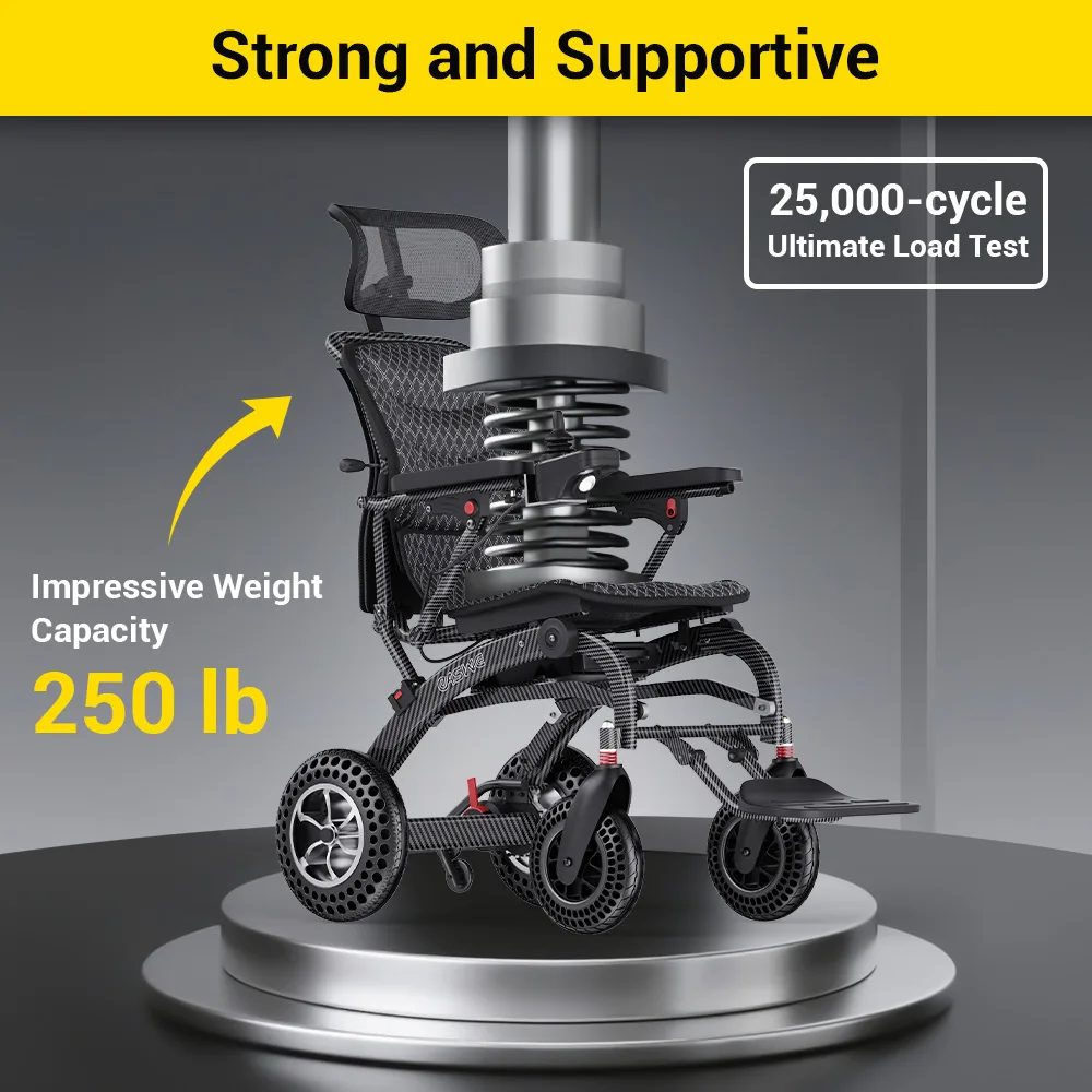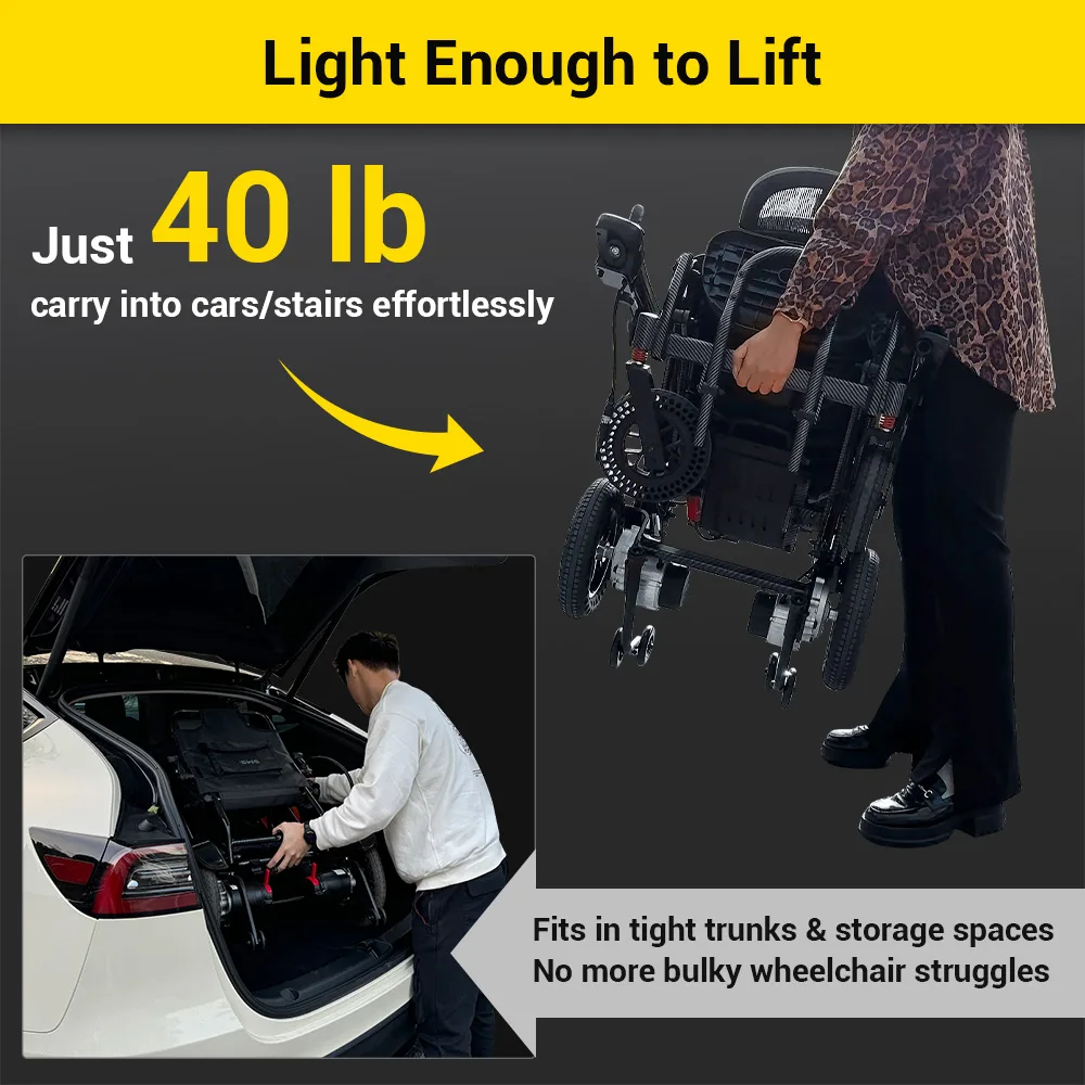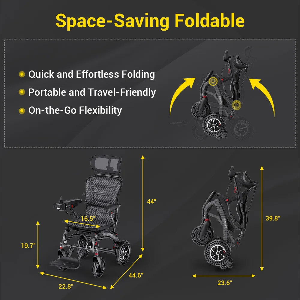 This wheelchair is perfect for my active lifestyle. The battery lasts all day, the ride is smooth, and the headrest provides great comfort. Folding it for a taxi ride is a quick and simple process.