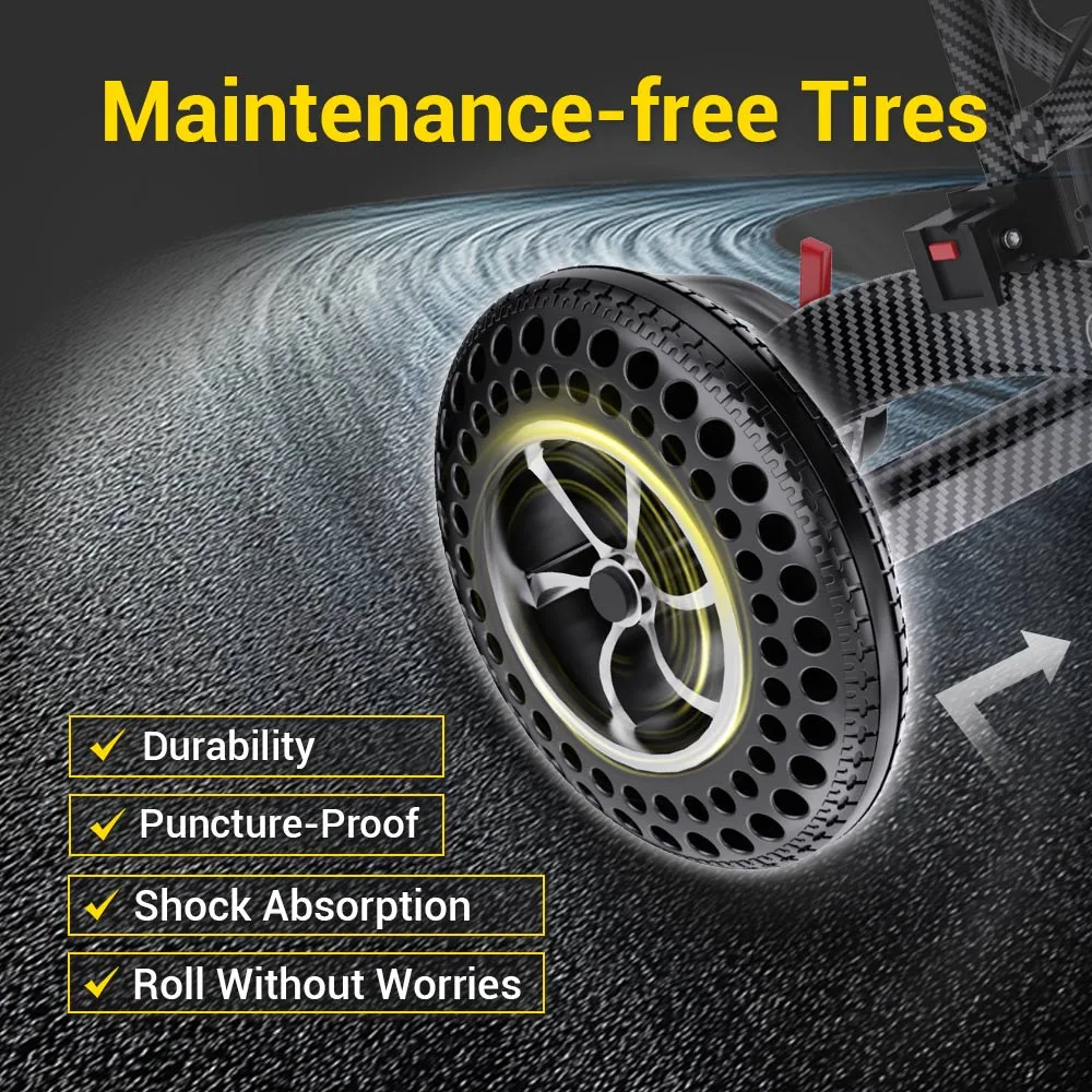 | Rear Wheels | 12″ Honeycomb tires | 10″ Honeycomb tires | 12″ Honeycomb tires | 9″ Solid tires | 10″ Solid tires |