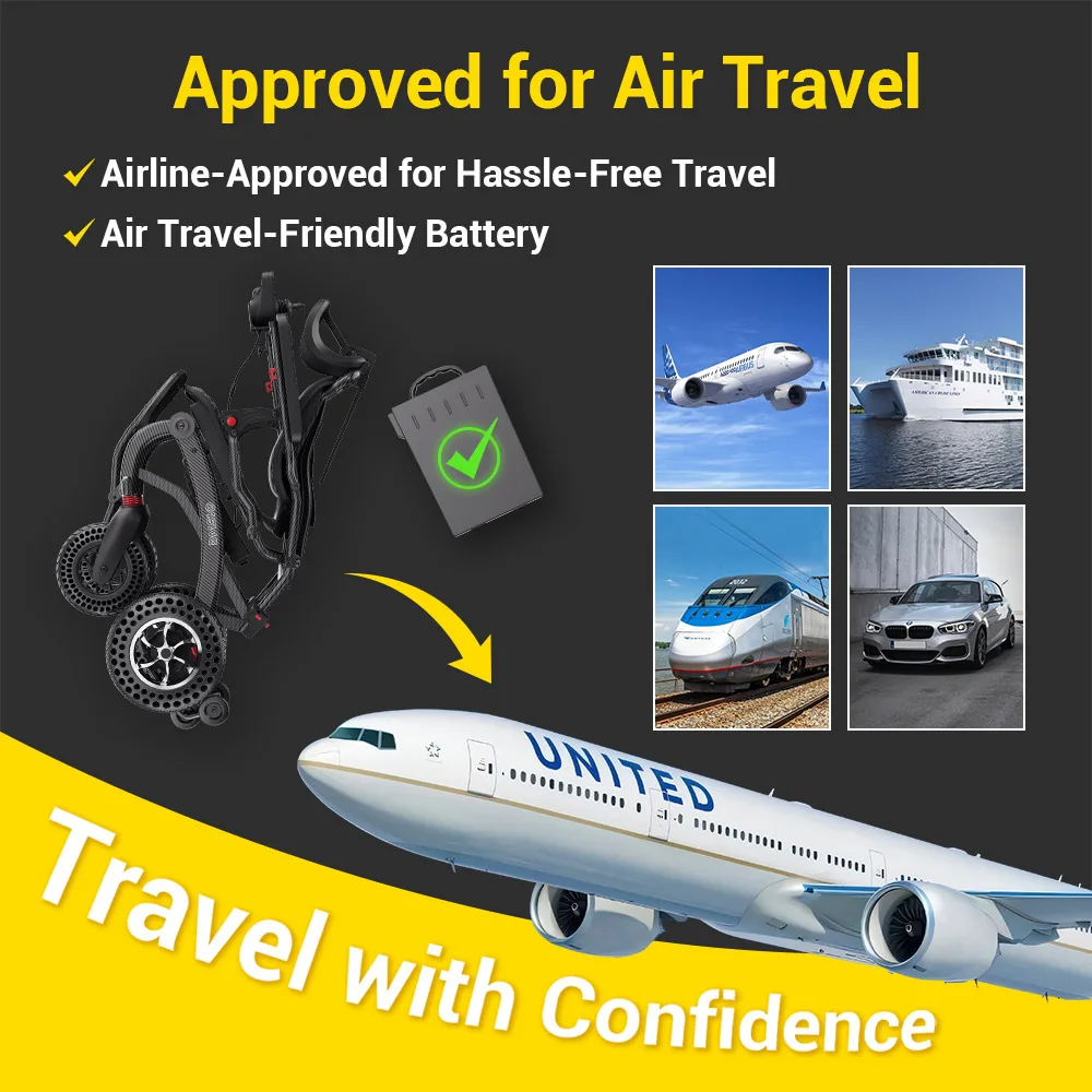 - Max 48km Range: The B10 electric wheelchair comes with one 12AH lithium battery as standard. You can choose the dual-battery option, which provides a maximum range of 48km. This wheelchair is airline-approved, ensuring hassle-free travel.